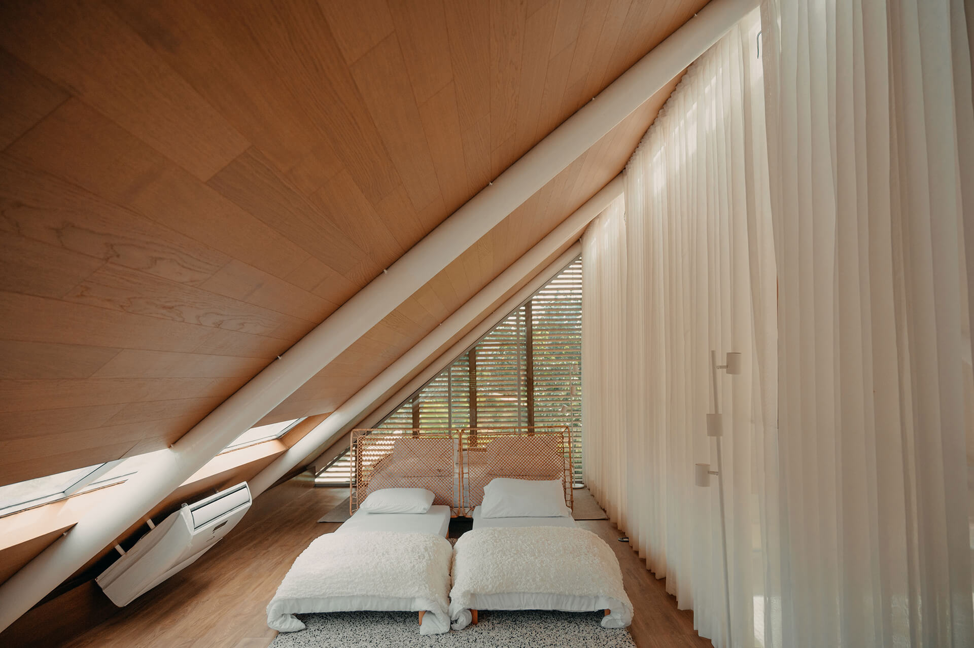 The main dwelling is a space that lets you take a breather with nature at any spot: to see and feel the morning breeze, the afternoon sun, and the chill of the evening, even indoors
