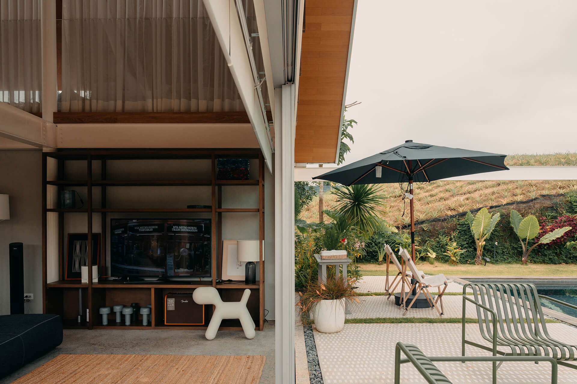 The outdoors is an inviting, open space decked with minimalist fixtures for you to experience the day as it unfolds: from a fresh breakfast alfresco, to a quick noontime dip in the bubbly pool, and the warm bonfire to cap off a chilly night.